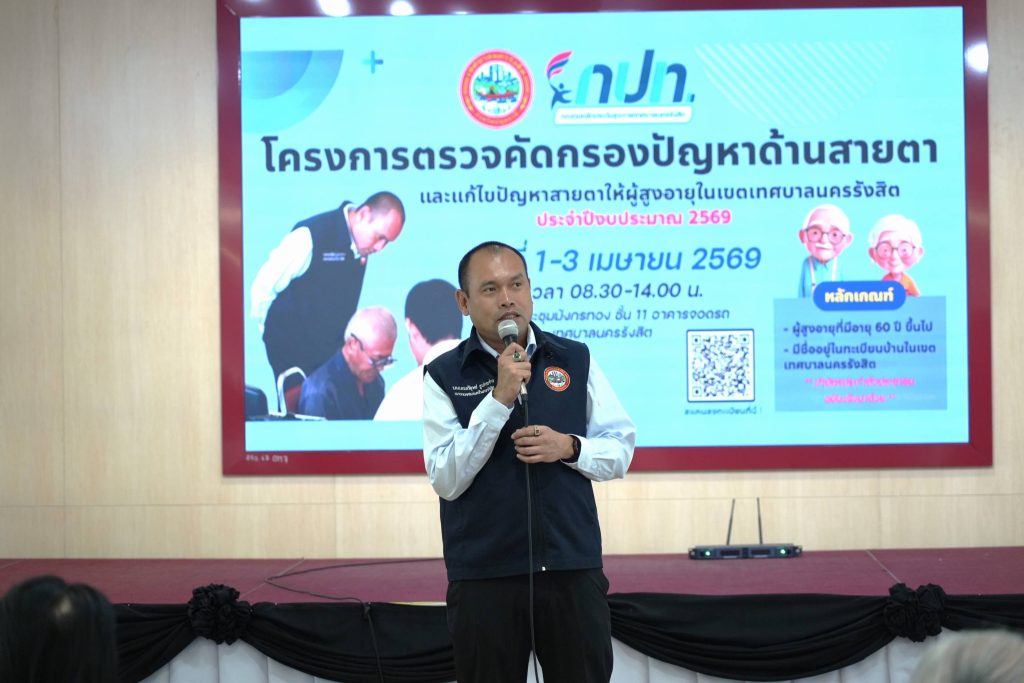 ร้อยตำรวจเอก ดร.ตรีลุพธ์ ธูปกระจ่าง นายกเทศมนตรีนครรังสิต เล็งเห็นถึงความสำคัญของคุณภาพชีวิตที่ดีของผู้สูงอายุ โดยเฉพาะในด้านสุขภาวะทางสายตา จึงได้จัดทำ “โครงการตรวจคัดกรองปัญหาสายตา และแก้ไขปัญหาสายตาให้ผู้สูงอายุในเขตเทศบาลนครรังสิต ประจำปีงบประมาณ 2569”