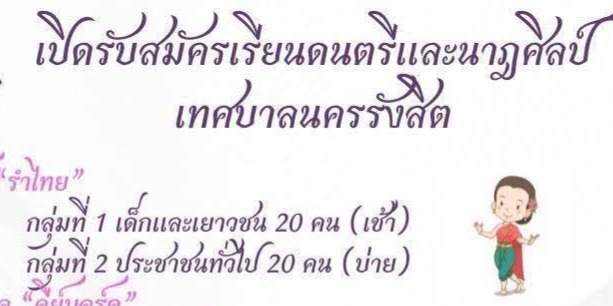 เทศบาลนครรังสิต เปิดรับสมัครฝึกอบรม รำไทย, คีย์บอร์ด, ขิม ร้องเพลงไทยสากล และ ไวโอลิน