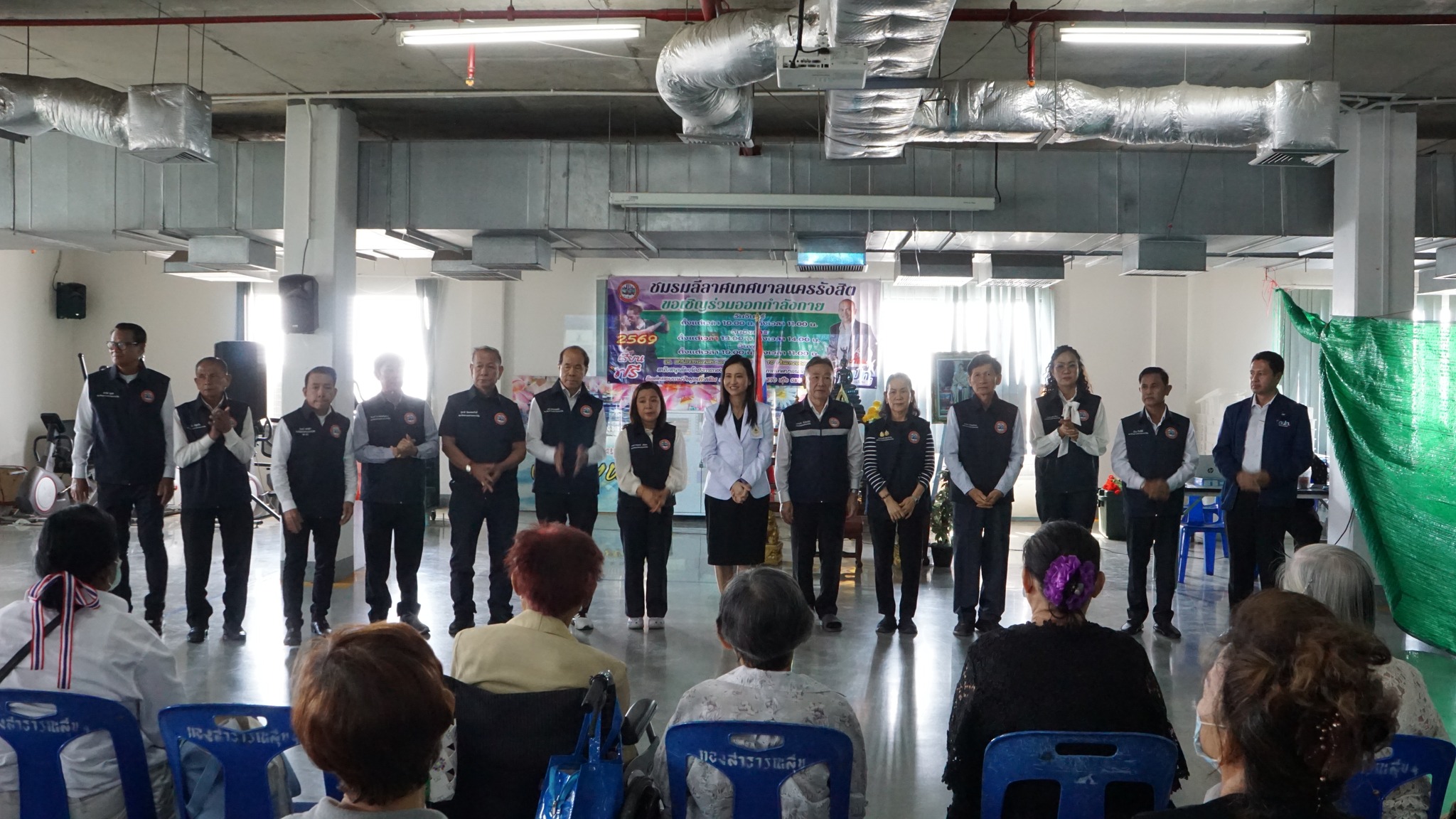 ร้อยตำรวจเอก ดร. ตรีลุพธุ์ ธูปกระจ่าง นายกเทศมนตรีนครรังสิต มอบหมาย นายวรรณชัย อิทธิมณีสิริ รองนายกเทศมนตรีนครรังสิต คณะผู้บริหารสมาชิกสภาเทศบาล ที่ปรึกษากิตติมศักดิ์นายกเทศมนตรี และนายเพิ่มพงษ์ พุ่มวิเศษ ผู้อำนวยการกองสาธารณสุขและสิ่งเเวดล้อม ร่วมกิจกรรมชมรมผู้สูงอายุ ตลาดรังสิต