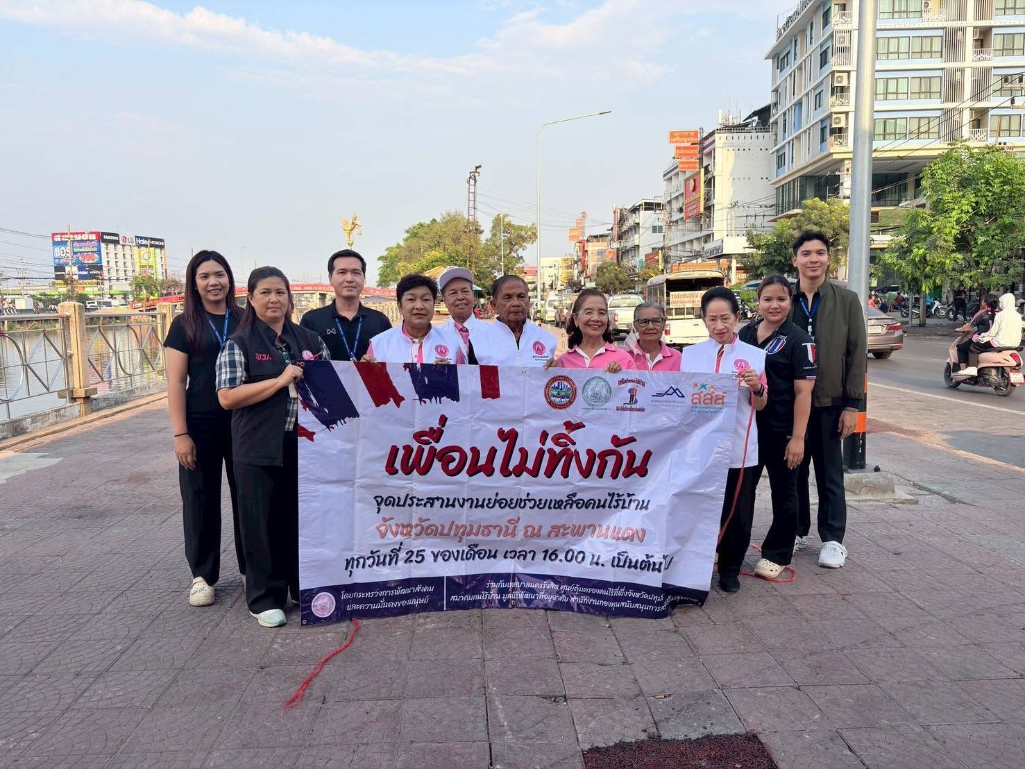 เจ้าหน้าที่ฝ่ายสังคมสงเคราะห์ ฝ่ายส่งเสริมสวัสดิการสังคม กองสวัสดิการสังคม เทศกิจ ร่วมลงพื้นที่กับ ศูนย์คุ้มครองและเสริมสร้างคุณภาพชีวิตจังหวัดปทุมธานี สมาคมคนไร้บ้าน อาสาสมัครพัฒนาสังคมและความมั่นคงของมนุษย์ ตาม “โครงการปฏิบัติการไม่ทิ้งใครไว้ข้างหลัง จุดประสานคนไร้บ้าน” ประจำเดือนกุมภาพันธ์ 2569 โดยตั้งจุดประสานคนไร้บ้าน บริเวณสะพานแดง และจัดระเบียบบริเวณสะพานลอยฟิวเจอร์พาร์ครังสิต ซึ่งได้ประสานภาคีเครือข่าย เพื่อสร้างความรู้ความเข้าใจในการดำเนินงาน ช่วยเหลือการเข้ารับการคุ้มครองในศูนย์คนไร้ที่พึ่ง และช่วยเหลือในด้านอื่นๆ แก่ผู้ประสบปัญหาทางสังคม