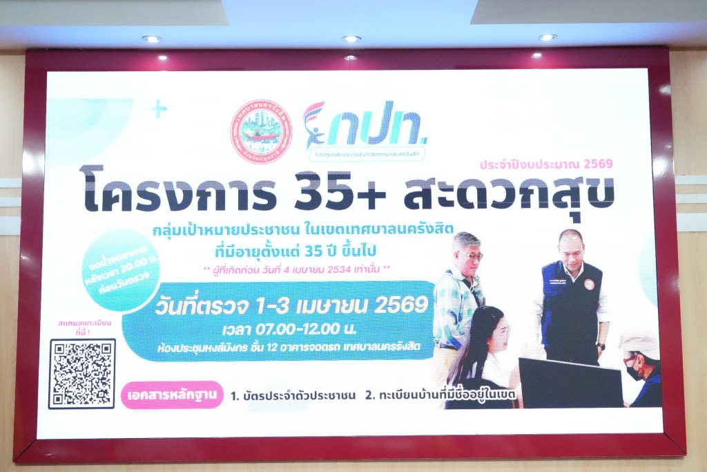เทศบาลนครรังสิตดำเนินโครงการ “35+ สะดวกสุข” ประจำปีงบประมาณ 2569 ให้บริการตรวจสุขภาพประชาชน ฟรี!