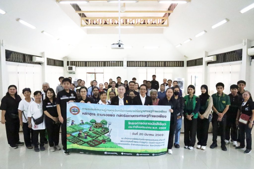 วันที่ 20 มีนาคม 2569 ณ สำนักงานพิพิธภัณฑ์เกษตรเฉลิมพระเกียรติพระบาทสมเด็จพระเจ้าอยู่หัว (องค์การมหาชน) ตำบลคลองหนึ่ง อำเภอคลองหลวง จังหวัดปทุมธานี ร้อยตำรวจเอก ดร.ตรีลุพธ์ ธูปกระจ่าง นายกเทศมนตรีนครรังสิต มอบหมาย นายวรรณชัย อิทธิมณีสิริ รองนายกเทศมนตรีนครรังสิต ให้เกียรติเป็นประธานกล่าวเปิดกิจกรรม การอบรมให้ความรู้เกษตรอินทรีย์ตามแนวปรัชญาเศรษฐกิจพอเพียง ” หลักสูตร ตามรอยพ่อ กษัตริย์เกษตรเศรษฐกิจพอเพียง ” ตามโครงการตลาดนัดสีเขียว ประจำปีงบประมาณ พ.ศ. 2569 โดยมี