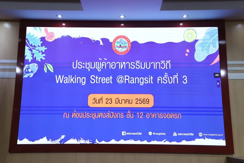 วันที่ 23 มีนาคม 2569 เวลา 13.00 น. ณ ห้องประชุมหงส์มังกร ชั้น 12 อาคารจอดรถ เทศบาลนครรังสิต ร้อยตำรวจเอก ดร.ตรีลุพธ์ ธูปกระจ่าง นายกเทศมนตรีนครรังสิต ให้เกียรติเป็นประธานในการประชุมผู้ค้าอาหารริมบาทวิถี ถนนคนเดิน “เดิน กิน ชิม เที่ยว Walking Street @Rangsit” ครั้งที่ 3/2569 ซึ่งจะจัดงานในระหว่างวันที่ 3