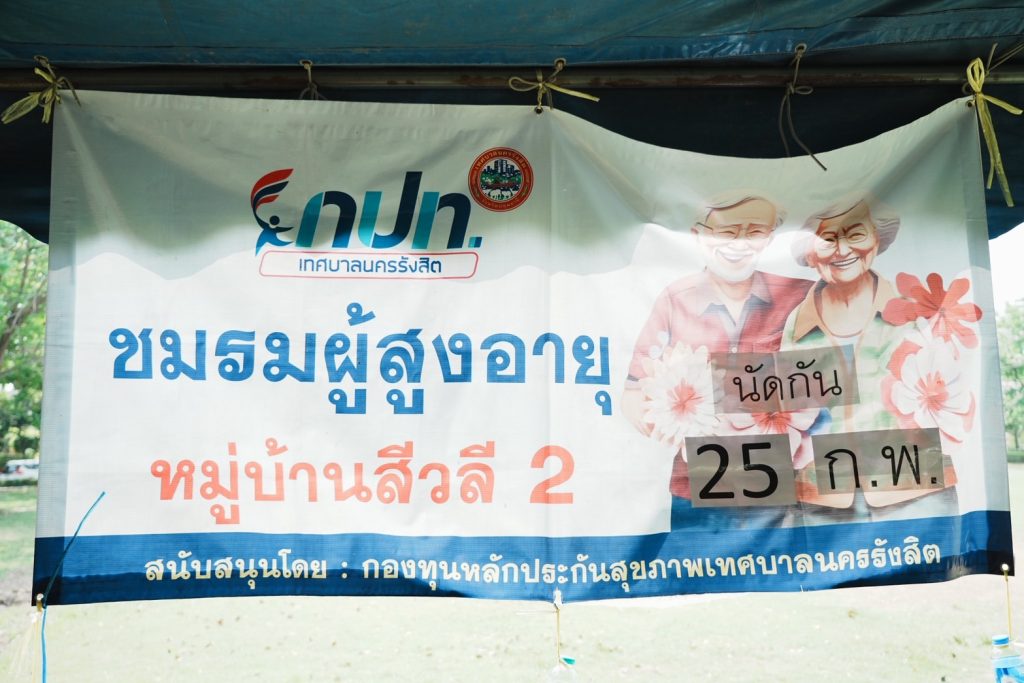 วันที่ 25 กุมภาพันธ์ 2569 เวลา 09.30 น. ณ สวนสุขภาพหมู่บ้านสีวลี 2 ร้อยตำรวจเอก ดร.ตรีลุพธ์ ธูปกระจ่าง นายกเทศมนตรีนครรังสิต มอบหมาย นายทรงสิทธิ์ ฐานุกิจอนันท์ และนางสาวอรุณรัตน์ มงคลพิทักษ์กุล รองนายกเทศมนตรีนครรังสิต พร้อมด้วย สมาชิกสภาเทศบาลนครรังสิต และผู้อำนวยการกองสาธารณสุขและสิ่งแวดล้อม เข้าร่วมกิจกรรมชมรมผู้สูงอายุ หมู่บ้านสีวลี 2 ภายในกิจกรรมประกอบด้วยการตรวจสุขภาพเบื้องต้น การออกกำลังกายกายบริหาร และกิจกรรมบริหารนิ้วมือจากงานประดิษฐ์ช่อดอกไม้ประดับ พร้อมทั้งคณะผู้บริหารได้พบปะพูดคุยและร่วมอวยพรวันเกิดแก่ผู้สูงอายุที่เกิดในเดือนกุมภาพันธ์