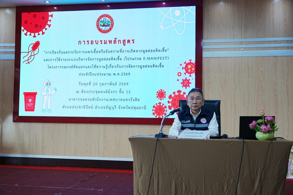 วันที่ 20 กุมภาพันธ์ 2569 เมื่อเวลา 09.00 น. ณ ห้องประชุมหงส์มังกร ชั้น 12 อาคารจอดรถสำนักงานเทศบาลนครรังสิต ร้อยตำรวจเอก ดร.ตรีลุพธ์ ธูปกระจ่าง นายกเทศมนตรีนครรังสิต มอบหมาย นายวรรณชัย อิทธิมณีสิริ รองนายกเทศมนตรี เป็นประธานในพิธีเปิดการอบรมหลักสูตร การป้องกันและระงับการแพร่เชื้อหรืออันตรายที่อาจเกิดจากมูลฝอยติดเชื้อ และการใช้งานระบบบริหารจัดการมูลฝอยติดเชื้อ (โปรแกรม E-MANIFEST) โครงการรณรงค์คัดแยกและให้ความรู้เกี่ยวกับการจัดการมูลฝอยติดเชื้อประจำปีงบประมาณ พ.ศ. 2569 โดยมี สิบเอกหญิงผกาพรรณ
