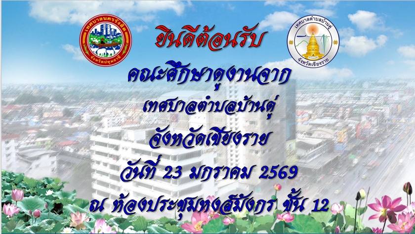 วันที่ 23 มกราคม 2569 เวลา 13.00 น. ณ ห้องประชุมหงส์มังกร ชั้น 12 อาคารจอดรถ เทศบาลนครรังสิต ร้อยตำรวจเอก ดร.ตรีลุพธ์ ธูปกระจ่าง นายกเทศมนตรีนครรังสิต มอบหมายให้ นางสาวอรุณรัตน์ มงคลพิทักษ์กุล รองนายกเทศมนตรีนครรังสิต เป็นประธานกล่าวต้อนรับคณะศึกษาดูงานจากเทศบาลตำบลบ้านดู่ จังหวัดเชียงราย ในการนี้ได้รับเกียรติจาก นายวรรณชัย อิทธิมณีสิริ รองนายกเทศมนตรีนครรังสิต พร้อมด้วยคณะเลขานุการนายกเทศมนตรี สมาชิกสภาเทศบาล สิบเอกหญิง